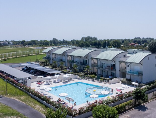 Nedávno postavené villaggio GLICINI (Viale dei Cigni) se nachází na okraji letoviska. Na oploceném pozemku je klientům k dispozici bazén pro dospělé, dětský bazén, solární terasa s lehátky a parkovací místo pro každý apartmán. Dále je k dispozici zdarma vláček na pláž.