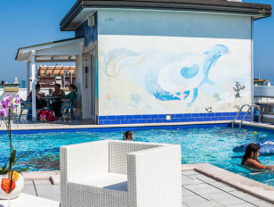 Hotel CHRISTIAN*** (Via Olanda) se nachází v klidnější části letoviska, nedaleko privátní pláže a obchodní třídy. Klientům nabízí recepci, výtah, čítárnu, společenskou místnost s TV, restauraci s barem, na střeše hotelu bazén s hydromasážní částí a solární terasu s lehátky a slunečníky. Pokoje mají vlastní sociální zařízení, fén, TV/SAT, trezor, Wi-Fi, klimatizaci a balkon.