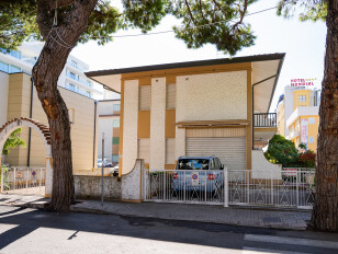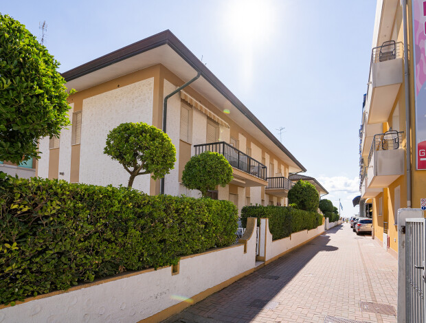 Residence TREVILLE (Via Dalmazia) je tvořena třemi menšími patrovými budovami s apartmány. Nachází se v klidnější části centra letoviska, nedaleko pláže a pár minut chůze od náměstí Piazza Manzoni i živé ulice Via Bafile s obchody a restauracemi. Residence má vlastní parkoviště, na kterém je k apartmánu vyhrazeno 1 parkovací místo.