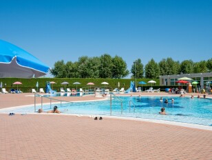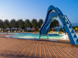 Klientům je zde k dispozici recepce, market, salónek s TV, půjčovna kol, prádelna s pračkou a sušičkou (za poplatek), společné barbeque, dětské hřiště, volejbalové hřiště a stolní tenis. Nově také vyhřívaný bazén a dětský bazén se skluzavkou, solární terasa se slunečníky a lehátky. U bazénu se nachází bar a restaurace s pizzerií, ve které je k dispozici Internet point. Na recepci jsou k zapůjčení slunečníky, které je možné použít na pláži, na kterou jede zdarma minibus. Mobilhomy a bungalow Baby casa mají vlastní sociální zařízení, Wi-Fi, klimatizaci a parkovací místo. Bungalow Legno je bez sociálního zařízení (společné v rámci campingu), s Wi-Fi a parkovacím místem.
