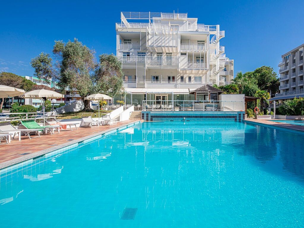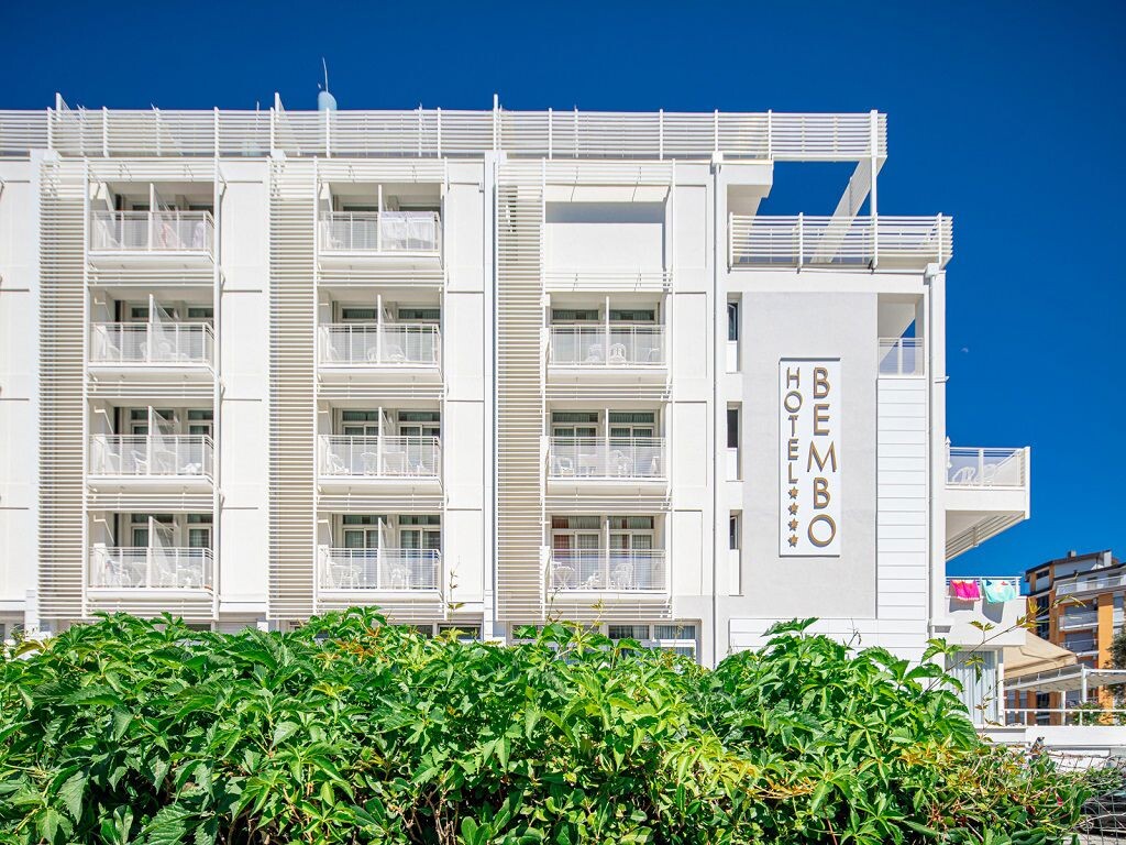 Nedávno zrekonstruovaný HOTEL BEMBO (Via Europa)  se nachází nedaleko moře a centra města, obklopený příjemnou zahradou, která vytváří svěží a relaxační atmosféru. Hotel nabízí bezplatné Wi-Fi, elegantní salonek s televizním koutkem, velký bar na terase, tenisové kurty, víceúčelové hřiště,hřiště na petanque, stolní tenis, jízdní kola, soukromé parkoviště a garáž.Soukromá pláž se slunečníky, lehátky a skládacími křesly, slunné bazény pro dospělé a děti se snack barem a vnitřní i venkovní hřiště doplňují nabízené vybavení. Nabízí klientům ubytování  v útulných pokojích s balkonem s výhledem na moře (částečným neb bočním), sprchou, fénem, ​​klimatizací, telefonem, trezorem, LCD satelitní televizí, Wi-Fi a minibarem.Pokoje typu Suite jsou  vhodné pro pobyty až 6ti členných rodin. Pokoj Suite Comfort Plus má na terase vlastní vířivku.