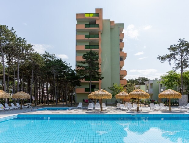 Na prostorném pozemku porostlém piniemi se nachází residence CASTELLO (Via Parco dei Pini). K residenci s výtahem náleží i okolní jednopatrové vilky. Klienti mají k dispozici bazén, dětský bazén, animace (na pláži nebo u baru Sporting), dětské hřiště, každý apartmán má vyhrazené parkovací místo. Všechny apartmány jsou vybaveny vlastním sociálním zařízením, TV/SAT, klimatizací, WiFI, mikrovlnnou troubou, kávovarem a balkonem nebo terasou (v přízemí). Apartmány typu C2 a D se nacházejí v nejvyšším patře a mají panoramatický výhled do okolí. Apartmány C trilo 7 ve vilkách jsou mezonetové v přízemí a prvním patře s vnitřním schodištěm a s vlastní zahrádkou, mají navíc dvojí sociální zařízení, fén, pračku a trezor. Ceny vilky C trilo 7 na vyžádání.