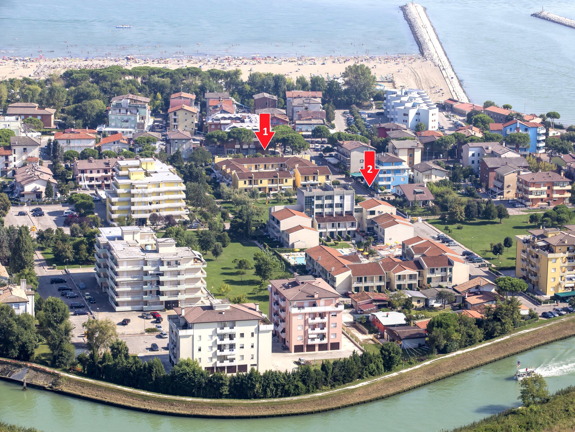 Moderní villaggio LUNA (Via Boite) leží v klidné části letoviska, cca 700 m od historického centra Caorle. Villaggio tvoří menší residence s výtahem a 2 vilové komplexy, z nichž jeden je blíž k pláži (Luna 1) a druhý má uprostřed dětský bazén a bazén pro dospělé se solární terasou a lehátky (Luna 2). Bazény mohou využívat všichni klienti villaggia, u bazénu je k dispozici Wi-Fi. V areálu je rovněž dětské hřiště, restaurace s pizzerií a parkovací místa. Všechny vilky jsou mezonetové s vnitřním schodištěm, vlastním sociálním zařízením, TV/SAT, trezorem, klimatizací a v přízemí s dlážděnou terasou (C2) nebo zahrádkou (C1).