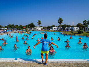 Hotel FUTURA CLUB TORRE RINALDA**** (Via dei Crostacei) se rozprostírá podél písčité pláže na rozsáhlém pozemku. Klientům je k dispozici recepce s úschovnou zavazadel, restaurace, bary, bazén pro dospělé, dětský bazén, solární terasa a Wi-Fi ve společných prostorách. Dále pak multifunkční hřiště, stolní tenis, plážový volejbal, jóga, pilates, lukostřelba, animační programy pro děti, večerní vystoupení v amfiteátru atd. Pro klienty s nejmenšími dětmi (0-3 let) je za poplatek k dispozici místnost vybavená kuchyňským koutem, lednicí, mixérem, mikrovlnnou troubou, židličkami, přebalovacím pultem, sterilizátorem, ohřívačem láhví, vybavením pro vaření, stolování i ohřev jídla. Místnost je přístupná 24 hodin denně a ve vymezených časech je zde přítomen personál, který nabízí čerstvé ovoce, mléko, vývary a zeleninové polévky, vařené ryby a maso, jogurty, sušenky, ovocné džusy a čaje.