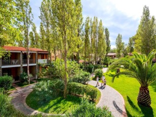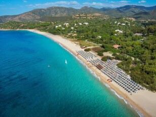 Hotel CALASERENA VILLAGE**** (Via Antares) se skládá ze dvou hlavních a několika menších vedlejších budov, které jsou postaveny na jižní pláži u Geremeas, mezi městy Cagliari a Villassimius. Klientům je k dispozici recepce, Wi-Fi, místnost s TV, restaurace, bar, plavecký bazén, hydromasážní bazén a dětský bazén se skluzavkami, plážový servis od 4. řady, posilovna, víceúčelové hřiště, plážový volejbal, lékařská služba (za poplatek) a parkoviště. Pro rodiny s dětmi nabízí miniklub s dětským bazénem, junior klub s organizovanými programy a stáj s jízdárnou s poníky. Pro maminky s nejmenšími dětmi je k dispozici prostor pro přípravu a konzumaci dětských jídel včetně základních surovin. Za poplatek je možno využít potápěčské centrum a půjčovnu aut a skútrů. Na vyžádání je možné zajistit obědový balíček ke konzumaci na pláži.