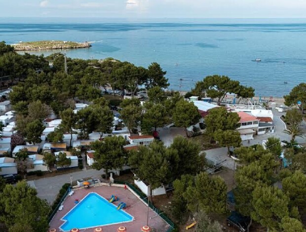 VILLAGGIO CAMPING CAPO VIESTE se rozkládá na 6,5 ha pozemku, v krásné zátoce se skalnatými útesy přímo u pláže bez nutnosti přecházet silnici, cca 8 km od historického centra města. Pro obdivovatele archeologických nalezišť villaggio skýtá malé překvapení ve formě známé Nekropole La Salata, kterou lze navštívit přímo uvnitř komplexu. Klientům je k dispozici recepce, restaurace a bar s terasou a panoramatickým výhledem, pizzerie, animace (cca 01.06 - 15.09.), dětský bazén, Wi-Fi ve společných prostorách, tenisový kurt, volejbalové a dětské hřiště, diskotéka, herna, minimarket a kryté parkoviště. Přímo ve villaggiu je možnost si zakoupit fakultativní výlety.