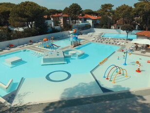 Villaggio MARINA (Via delle Acacie) se rozkládá přímo u privátní pláže ve stínu pinií na prostorném pozemku. Klientům je k dispozici bazén pro dospělé, dále nově vybudovaný vodní park s bazény a atrakcemi pro děti (v provozu cca 16.05. - 20.09.2026, pro ubytované klienty zdarma, pro návštěvníky za poplatek), restaurace, pizzerie, bar, supermarket, prádelna, bankomat a parkoviště. Komplex nabízí bohaté sportovní vyžití i zábavné animace (v provozu cca 01.06. - 06.09.2026). Klienti mohou využít za poplatek lékařské služby, stanice pro dobíjení elektromobilů, fitness centrum se spinningem, saunou a solární terasou. Wi-Fi je k dispozici ve společných prostorách, v centrální části kempu, u bazénu, na pláži a v restauraci. Na pláži lze využít hřiště na plážový volejbal, kurzy windsurfingu, kanoe, lukostřelbu a v bazénu kurzy plavání pro děti i dospělé. V aquaparku jsou k dispozici bazény s dětskými hrami. V centru kempu se nachází dětské hřiště, na zelené ploše mezi kempem a pláží dětské hřiště a na pláži skluzavka a kolotoč.